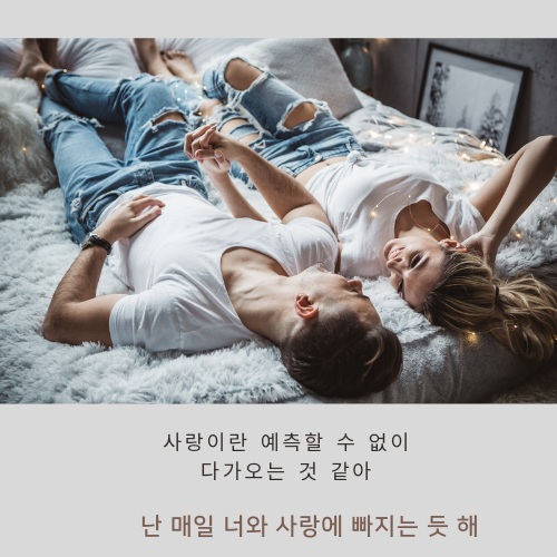 When your legs don't work like they used to before 세월이 흘러 다리에 힘이 없어지고 And I can't sweep you off your feet 일어서는 것 조차 힘들어 질때가 되어도 Will your mouth still remember the taste of my love? 나를 사랑한다고 말해주겠니? Will your eyes still smile from your cheeks? 그 때도 나를 보며 웃어 주겠니? And darling I will be loving you till we're 70 일흔 살이 넘어서도 너를 사랑할거야 And baby my heart could still fall as hard at 23 나의 심장은 여전히 스물 셋처럼 두근거릴 거야 And I'm thinking 'bout how people fall in love in mysterious ways 사랑이란 예측할 수 없이 다가오는 것 같아 Maybe just the touch of a hand 어쩌면 손끝만 닿아도 시작될 수 있어 Oh me I fall in love with you every single day 난 매일 너와 사랑에 빠지는 듯 해 And I just wanna tell you I am 그리고 나는 너한테 이 말을 해주고 싶어 So honey now 그러니 자기야 Take me into your loving arms 두 팔로 나를 꼭 안아줄래 Kiss me under the light of a thousand stars 수 많은 별빛 아래에서 키스 해줘 Place your head on my beating heart 너를 향해 뛰는 내 가슴에 얼굴을 묻어줘 I'm thinking out loud 이게 내 진심이야 That maybe we found love right where we are 지금 이 순간, 우리는 서로의 사랑을 만난 거야 When my hair's overgone and my memory fades 내 머리가 벗겨지고 기억도 흐려져 갈 때 And the crowds don't remember my name 사람들이 내 이름을 잊어가고 When my hands don't play the strings the same way 내가 예전같이 기타를 치지 못하게 되어도 I know you will still love me the same 너는 날 계속 사랑해 줄 거라 믿어 'Cause honey your soul could never grow old it's evergreen 우리의 영혼은 절대 사라지지 않고 늘 푸르기만 할거야 And baby your smile's forever in my mind and memory 너의 미소는 내 가슴과 기억속에 평생 남아있을거야 I'm thinking 'bout how people fall in love in mysterious ways 사랑이란 예측할 수 없이 다가오는 것 같아 Maybe it's all part of a plan 아마도 이건 운명 같아 I just keep on making the same mistakes 내가 바보 같은 실수를 하더라도 Hoping that you'll understand 나를 이해해 주겠니 But baby now 그러니 자기야 Take me into your loving arms 두 팔로 나를 꼭 안아줘 Kiss me under the light of a thousand stars 수 많은 별빛 아래에서 키스 해줘 Place your head on my beating heart 너를 향해 뛰는 내 가슴에 얼굴을 묻어줘 Thinking out loud 이게 내 진심이야 That maybe we found love right where we are 지금 이 순간, 우리는 서로의 사랑을 만난 거야 So baby now 그러니 자기야 Take me into your loving arms 두팔로 나를 꼭 안아줘 Kiss me under the light of a thousand stars 수 많은 별빛 아래에서 키스 해줘 Oh daring Place your head on my beating heart 너를 향해 뛰는 내 가슴에 얼굴을 묻어줘 I'm Thinking out loud 이게 내 진심이야 That maybe we found love right where we are 지금 이 순간, 우리는 서로의 사랑을 만난 거야 Oh maybe we found love right where we are 지금 이 순간, 우리는 서로의 사랑을 만난 거야 And we found love right where we are 지금 이 순간, 우리는 서로의 사랑을 만난 거야 |